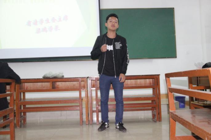 接着资环学院学生会主席梁鹏学长以他自己的亲身经验告诉同学们在平常的生活中要努力刻苦学习,要积极自觉向党靠拢,要不断完善自身修养,不忘初心争做一个有志向的优秀青年。