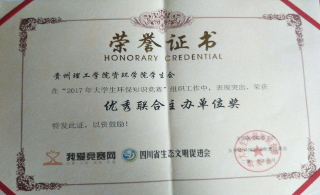 由大学生环保知识竞赛组委会、四川省生态文明促进会、 我爱竞赛网主办,全国百所高校团委、学生会、社团作为联合主办单位的2017年大学生环保知识竞赛于近日圆满完成,中国足球彩票:资源与环境工程学院有幸成为了联合主办单位。