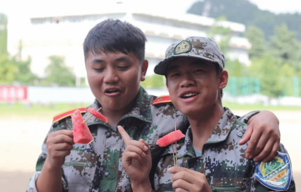 军训场上,整齐的步伐、严肃的表情依旧持续着,不一会儿,难得的休息时间到了,资环的学子们早已熟知的面孔,并没有初来报道的那份羞涩,纷纷呼应起来,你一块我一口,不一会儿,各种晒表情、晒吃相、晒友谊开始了,满是享受的表情挂在脸上,资环这个大家庭的新老成员更加熟络了起来。
