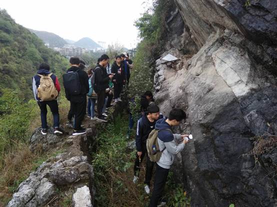 2019年4月3日上午8点,资环学院资勘172班全体同学在程国繁老师的带领下前往草坝路沿水渠进行构造地质学课间野外实习。