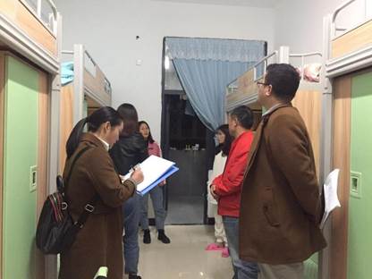 会后,吴书记带队前往女生居住的3号公寓和男生居住的2号公寓走访。在走访学生宿舍过程中,老师们向同学们重点强调以下几点内容:一是宿舍安全用电的重要性,注意财物安全、用水用电安全、人身安全,加强内务清洁管理,保持宿舍环境卫生,宿舍走廊禁止放置闲杂物品,保留消防通道;二是良好的宿舍氛围是学生身心健康成长的基础,舍友之间应和睦相处,互相谦让,互相理解,营造一个轻松和谐的宿舍氛围;三是临近评估,同学们要时刻保持寝室卫生并做到有文明、有礼貌。