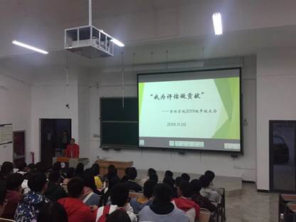 2019年11月5日下午5时40分,资源与环境工程学院在贵安校区开物楼109教室举办了以“我为评估做贡献”为主题的2019级年级大会,在会上吴维义书记和梁珍副书记为同学们做了评估相关知识及准备辅导。梁珍副书记就评估的意义和同学们如何积极投入到评估中来做了深入浅出的讲解。