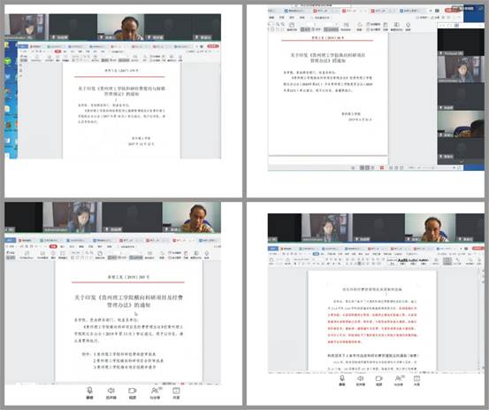 李桂贤副院长领学了国家财政部、科技部《中国足球彩票改进和加强中央财政科技经费管理的若干意见》,《贵州理工学院科研经费使用与报销管理规定》、《贵州理工学院纵向科研项目管理办法》、《贵州理工学院横向科研项目及经费管理办法》等科研项目管理和经费使用规章制度,并领学了科研人员《违反科研经费管理规定典型案例选编》。