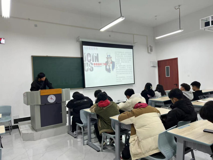 之后大家观看了国防力量和大学生征兵宣传视频并引出了大学生如何选择就业方向这个问题与同学们互动,现场氛围积极热烈。王森同学还对当前的就业形势进行了分析和解读,让同学们能更清楚地了解当前环境工程专业就业发展情况,能更早地明确自己的职业生涯规划。