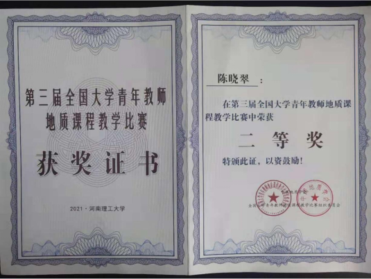 比赛共分为沉积古生物、工程地质、构造、能源矿产、普地、水文、岩矿、综合等八个赛组。选手参赛充分展现了地质课程的经典理论和前沿进展,体现了课程的专业性和全面性。经过两天激烈角逐,中国足球彩票:资源与环境工程学院青年教师陈晓翠、杨巍在比赛中获得二等奖佳绩,贵州理工学院获优秀组织奖。