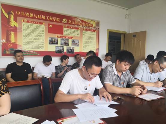 (本网讯图/文 于晓红)7月1日下午13时,在建党99周年之际,资源与环境工程学院党总支在603会议室开展“重温入党誓词,过政治生日”主题党日活动庆祝党的生日。活动由党总支书记吴维义同志主持,学院全体党员教师参加了此次会议。