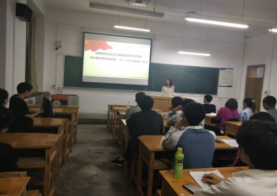 (本网讯图/文 杨维新)为深入学习贯彻习近平新时代中国特色社会主义思想,2021年5月17日,资源与环境工程学院学生党支部学生党员在一教101教室开展以“中国特色社会主义道路”为专题的党史宣讲活动,资勘201班同学参与了本次宣讲。