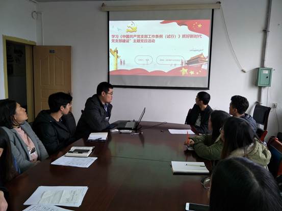 活动开始,李永老师带领党员同志一道认真学习了党支部工作条例制定的背景,让各党员同志对此次活动的开展有了清晰的认识。随后,从制定工作条例中重点阐述了强化支部建设的“重要意义、基本要求、以及重点举措”三个方面,强调支部是“团结群众的核心”,重在建设“家园,作为党的基层组织,工作重心就是要抓好落实等等。