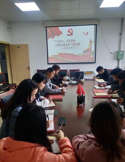 本次主题党课在“共产党人的初心和使命是什么?”的问题中开始,梁珍老师谈到共产党人必须牢记初心和使命,全心全意为人民服务。每一个党员,要不忘对马克思列宁主义的信仰之心、不忘共产主义理想的坚定之心、不忘实现民族复兴的使命之心、不忘对人民群众的赤子之心。