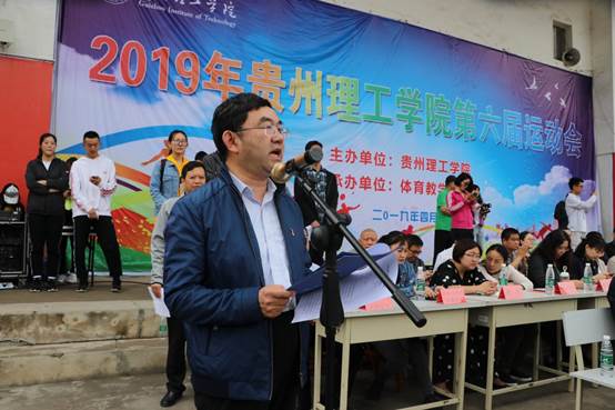 2019年4月18日,贵州理工学院第六届春季运动会在田径场举行,开幕式上,校党委书记曾羽书记宣布运动会开幕。