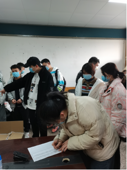 资环学院党总支书记吴维义、院长龙汉生、党总支副书记梁珍、学生科科长张双菊、辅导员杨东晟、班主任张立微等学院领导及教师在贵州理工学院蔡家关校区行政主楼为考研学生代表送出“考研暖心大礼包”。学院领导及老师一边发放礼包,一边叮嘱同学们在考研冲刺的最后阶段要注意防护、保重身体,同时鼓励同学们全力以赴、稳定心态,争取一战成硕。