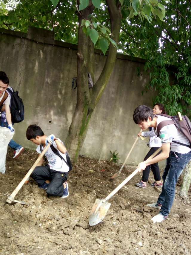 学生刚来到空地,学生会便带来了劳动工具。大家十分积极,纷纷拿上劳动工具,开始了开荒植树的环保活动。这看起来是一个苦力活,但是大家却兴致勃勃,丝毫没有因为幸苦而退缩。每个人都踊跃加入,拿上铲子,锄头,投入到热火朝天的劳动中。首先是松地,不管衣服会不会弄脏,挽起衣袖,说干就干。没有一个人偷懒,不管以前做没做过,每个人都认真的挖着地,没过好久,许多人就已大汗淋漓,这时刻的汗水在阳光下显得格外晶莹。然后是除杂,似乎在淘金一般,我们在松过的土壤里寻找石头、树枝、塑料纸等。大家配合分外积极,有的拿口袋,有的找石头,分工明确配合默契。在这次活动中,使同学们意识到大家是一个集体,在这次集体活动过后,彼此的友谊更加深厚。