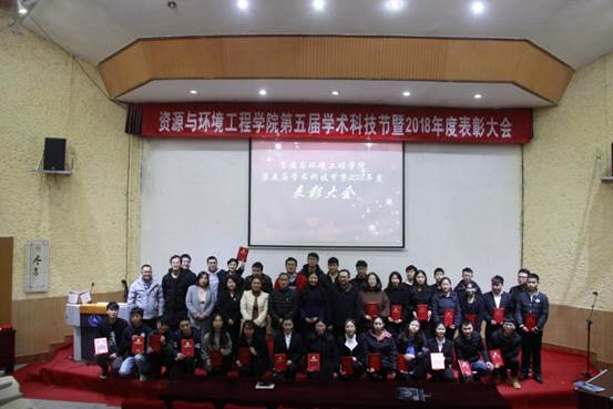 2018年12月21日中午,由我院团总支学生会主办的资源与环境工程学院第五届学术科技节暨2018年度表彰大会在逸夫小礼堂隆重举行。我院党总支副书记吴维义、副院长李桂贤、副院长龙汉生、辅导员、班主任老师以及受表彰的学生和部分学生代表参加会议。