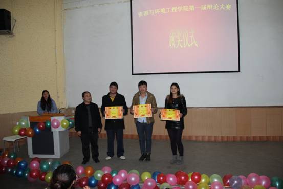 最后,工灾132班同学以精彩的辩论表现荣获一等奖,工灾131班荣获二等奖,资勘职132班荣获三等奖。由院长聂爱国教授、副院长李桂贤研究员为获奖班级颁奖。本次辩论赛在同学们热烈的掌声中圆满地落下帷幕。
