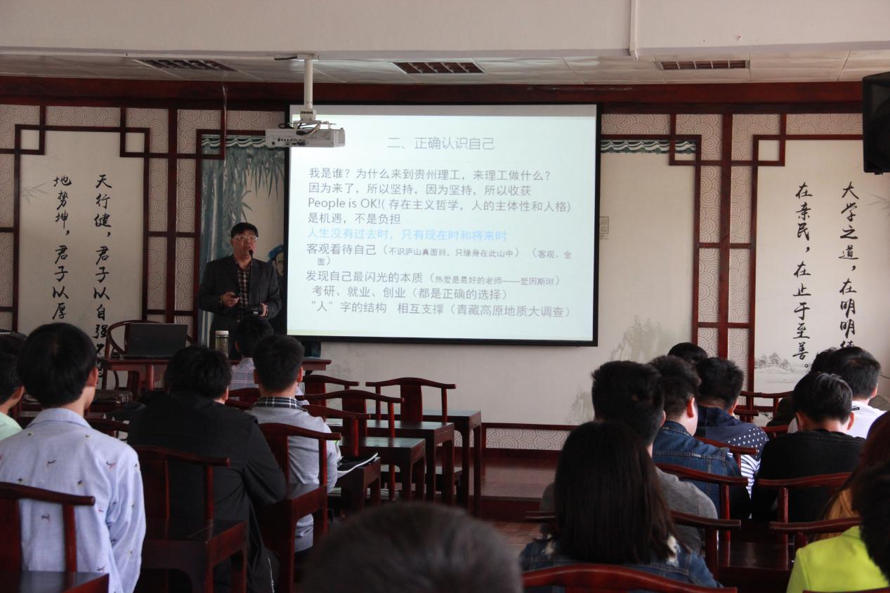 2017年4月13日中午十二点半,由资源与环境工程学院举办,程国繁老师主讲的“定位人生坐标,从贵州理工起航”道德讲堂专题讲座,在贵州理工学院图书馆道德讲堂顺利开展。资源与环境工程学院党总支副书记吴维义、学生科副科长张双菊及我院70余名学生参加了这次讲座。