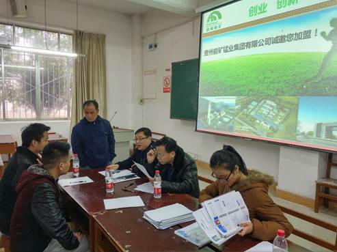 2017年12月13日14:00,资源与环境工程学院在3教115教室举办了2018届毕业生专场招聘会;贵州能矿锰业集团有限公司负责人以及全校各院系100多名毕业生参与此次招聘会,招聘会由我院党总支副书记吴维义主持。