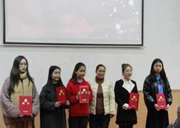 随后学院领导、班主任、辅导员为获奖同学进行了颁奖。