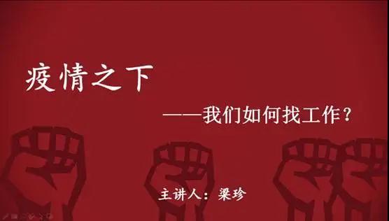 讲座上,梁珍副书记通过一段视频引入疫情开始以来至今的防控发展和全国各地驰援湖北的统计数据,说明了关键时刻,更见中国制度优势,从中央到地方,中国展现出很强的动员能力和组织能力,能在紧急情况下把资源分配到最需要的地方。这激起了同学们对党和国家的自豪感。之后通过需求、供给和上一年情况等四个维度结合学院2018、2019届毕业生工作行业和单位等数据,为同学们分析了此次新冠肺炎疫情给毕业生带来的就业压力。