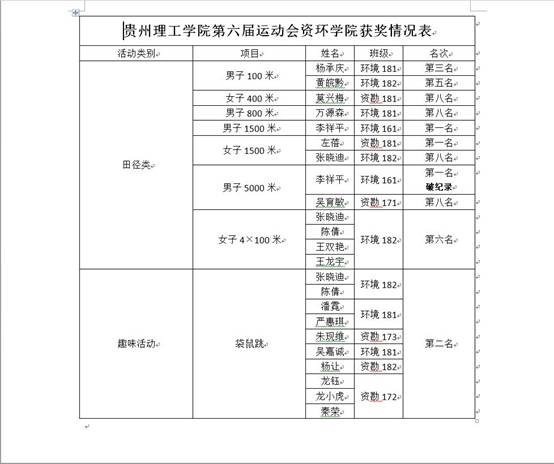 经过三天的比赛,运动会圆满的落下帷幕,我院在男子100米、女子400米、女子4×100等项目都获得了很好的成绩,特别值得是李祥平参加的男子5000米,除了获得第一外还打破了校记录(具体获奖名单可见附表)。