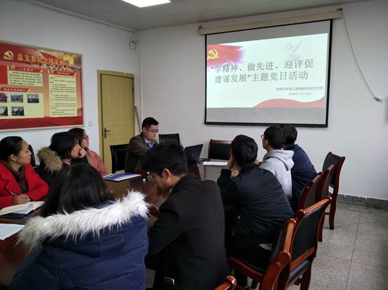2018年11月19日中午13:30,我院学生党支部为响应习近平总书记中国足球彩票“学先进、做先进”重要指示精神的号召,在行政楼603会议室开展了中国足球彩票“学精神、做先进、迎评促建谋发展”的主题党日活动。资环学院学生党支部全体党员参加了此次活动,活动由学生党支部书记李永老师主持。