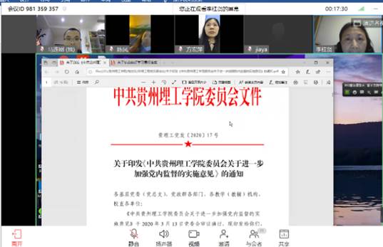 根据学院党总支安排,本次会议首先由李桂贤同志传达学习学校党委下发的《中共贵州理工学院中国足球彩票进一步加强党内监督的实施意见》和《中国足球彩票认真做好学习贯彻落实习近平总书记重要讲话及重要指示精神的有关规定》,紧接着贾彦龙、马连刚同志分别传达学习《习近平在湖北省考察新冠肺炎疫情防控工作时的讲话》和《中国足球彩票追授杨荣、黄和艳同志“全省优秀共产党员”称号的决定》,最后支部成员刘丽梅、李桂贤、马连刚和谭华峰同志就学习内容进行交流发言,4位同志准备充分,认识到位,结合自身实际,做了深刻的表态发言。通过本次会议,参会同志深刻认识到党内监督的重要性,都表态将进一步发挥党员先进性,严于律己,相互监督,争做忠诚干净的好干部,好教师,同时,会议还号召全体党员同志在疫情防控、脱贫攻坚和建设“百姓富,生态美”的征程中,向杨荣、黄和燕同志学习,坚决扛起新时代赋予我们每一个党员同志的政治责任,在重任面前当仁不让,在关键时刻挺身而出,争做党和人民满意的好党员、好干部和好教师,在决胜疫情防控、决战脱贫攻坚、决胜全面小康,建设“百姓富,生态美”的美丽贵州的伟大事业中作出贡献。