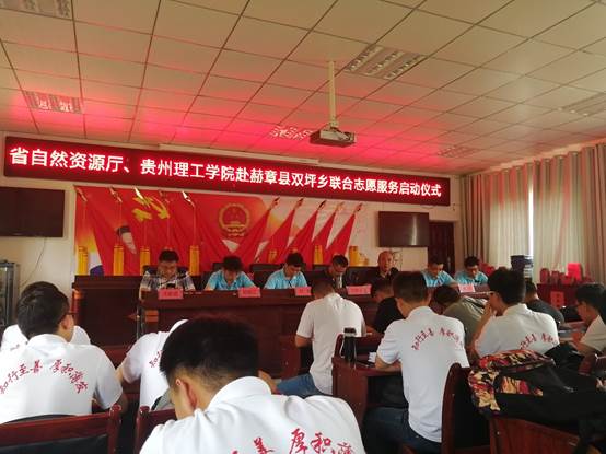 2019年7月21日上午9:30,学院派出的青年志愿服务者和带队老师李永坐上大巴车赶赴赫章县双坪乡,开展精准扶贫政策宣传,易地搬迁政策宣传,感恩教育,防艾禁毒宣传等活动。下午2:30,志愿服务团到达赫章县双坪乡政府。在双坪乡政府举行了省自然资源厅、贵州理工学院赴双坪乡联合志愿服务启动仪式,会上省自然资源厅派驻赫章县同步小康驻村工作队队长邱杰和双坪乡党委书记赵朝勇对志愿服务团到了表示感谢,同时对志愿服务团进行了脱贫攻坚政策的实践培训。让参与志愿服务活动的同学充分了解国家的脱贫政策,更好地做脱贫服务工作。