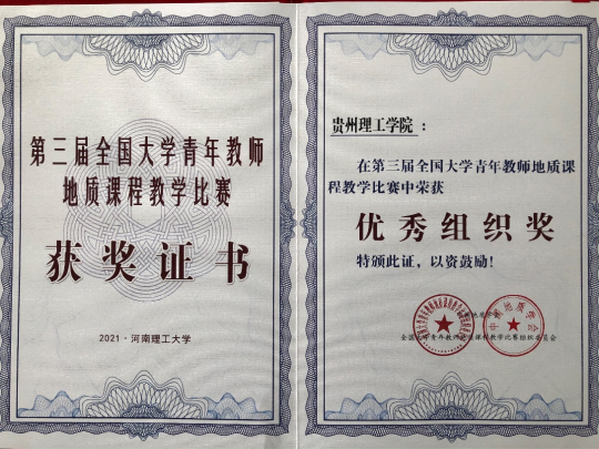 比赛共分为沉积古生物、工程地质、构造、能源矿产、普地、水文、岩矿、综合等八个赛组。选手参赛充分展现了地质课程的经典理论和前沿进展,体现了课程的专业性和全面性。经过两天激烈角逐,中国足球彩票:资源与环境工程学院青年教师陈晓翠、杨巍在比赛中获得二等奖佳绩,贵州理工学院获优秀组织奖。