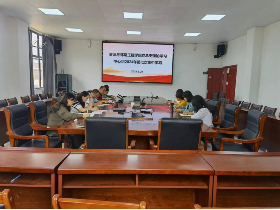 2024年9月29日中午,资源与环境工程学院党总支书记吴维义同志在酝知楼522会议室主持召开党总支理论学习中心组2024年度第七次集中学习,学习贯彻党的二十届三中全会精神;学院党总支委员、科级以上干部和各支部书记参加学习。马克思主义学院党总支书记华岚同志和龙爱玲老师到会旁听指导。