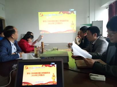 2018年是贯彻党的十九大精神的开局之年,也是中国足球彩票:全面从严治党的关键之年,合格评估的攻坚之年,新校区建设的收获之年,教育教学改革的提质之年。为了保质保量完成各项工作,中共贵州理工学院委员会下发了“2018年工作要点”。材料与冶金工程学院于2018年5月3日下午2点在主楼802会议室召开支部大会和全体党员大会,共同学习“中共贵州理工学院委员会2018年工作要点”,会议由教工党支部书记刘伟同志主持。