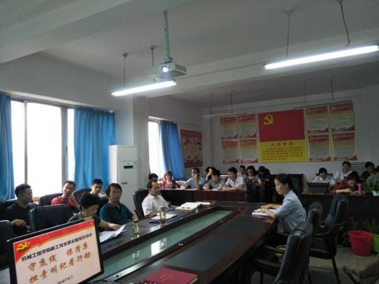 为深入贯彻落实全省党风廉政警示教育大会精神,以学校近期开展办公用房清理整改专项行动为契机,结合学校近期组织相关人员到警示教育基地开展专题警示活动,6月21日下午,机械工程学院教职工党支部开展“守底线 保清廉 担责明纪看行动”主题党日活动。本次活动参加范围除全体中共党员外,扩大到全体教职工参加。