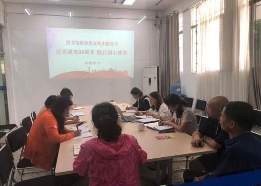本网讯(图书馆 沈庭燕/文 朱丹/图)根据学校组织部《中国足球彩票开展“庆祝建党98周年·践行初心使命”主题党日活动的通知》(贵理工组通[2019]22号)要求,7月1日下午,图书馆教师党支部组织全体党员在图书馆研讨室开展了“庆祝建党98周年·践行初心使命”主题党日活动。