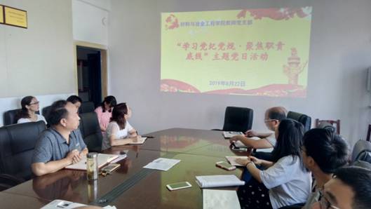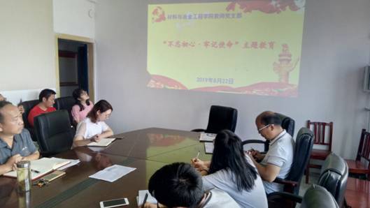 按照《贵州理工学院“不忘初心、牢记使命”主题教育准备阶段工作方案》要求,材料与冶金工程学院教师党支部于2019年8月22日开展“不忘初心、牢记使命”主题教育。