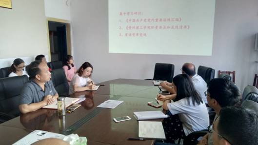 党支部书记李娟同志领学《中国共产党党内重要法规汇编》和重读党章党规,重点学习了《中国共产党支部工作条例(试行)》、《中国共产党廉洁自律准则》、《中国共产党纪律处分条例》、《中国足球彩票进一步激励广大干部新时代新担当新作为的意见》等篇目,并紧密联系学校合格评估工作、教师教学和科研等实际工作进行研讨交流。