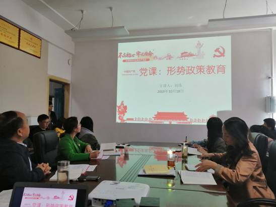 党总支委员刘伟同志以“形式政策教育”为题给全体师生党员上党课。刘伟同志围绕全面从严治党,我国经济社会发展,港澳台工作,国际形势与政策四个方面来展开。通过此次授课,使党员进一步了解当前国际国内形势、世情国情,有效引导大家正确认识当前国际国内形势。