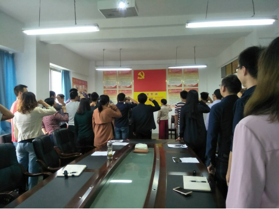 讲话结束后,在学院院长陈海虹的带领下,全体党员面对鲜红的党旗,重温入党誓词。庄严肃穆的重温入党誓词活动,使每一位党员干部都重新接受了心灵洗礼,产生了强烈的共鸣,激发了全体党员的党性热情。通过重温入党誓词,教育引导党员时刻牢记入党誓词,牢记党员身份,坚定理想信念,保持昂扬斗志;强化党员意识,发挥模范带头作用,以实际行动为党旗增光添彩。